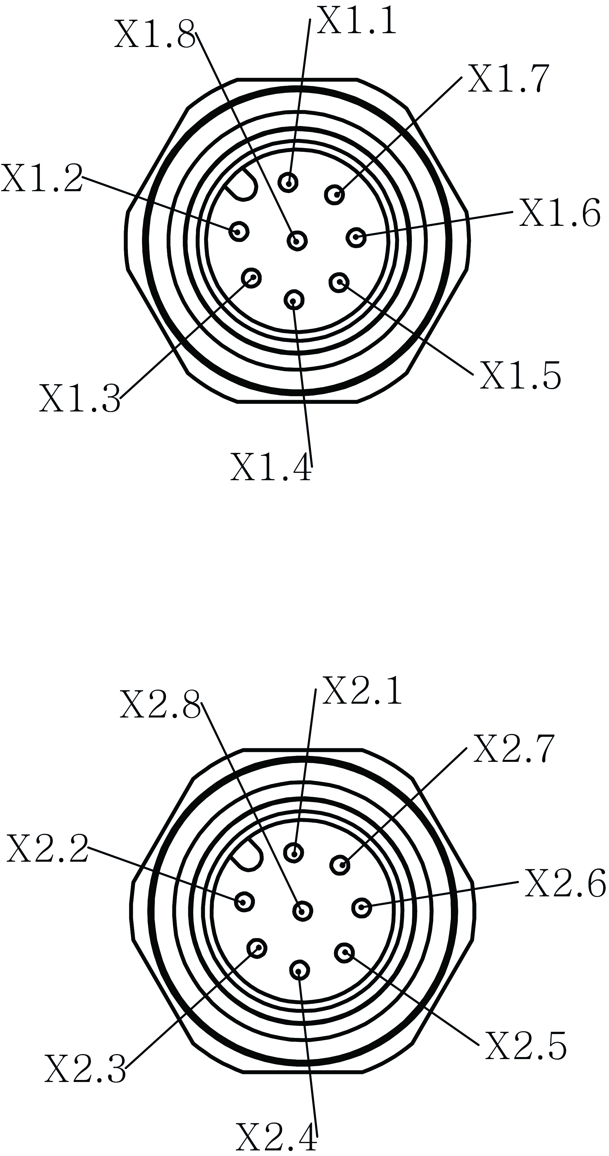 | 5 | Conector M12 de 8 pinos / plugue alinhado |