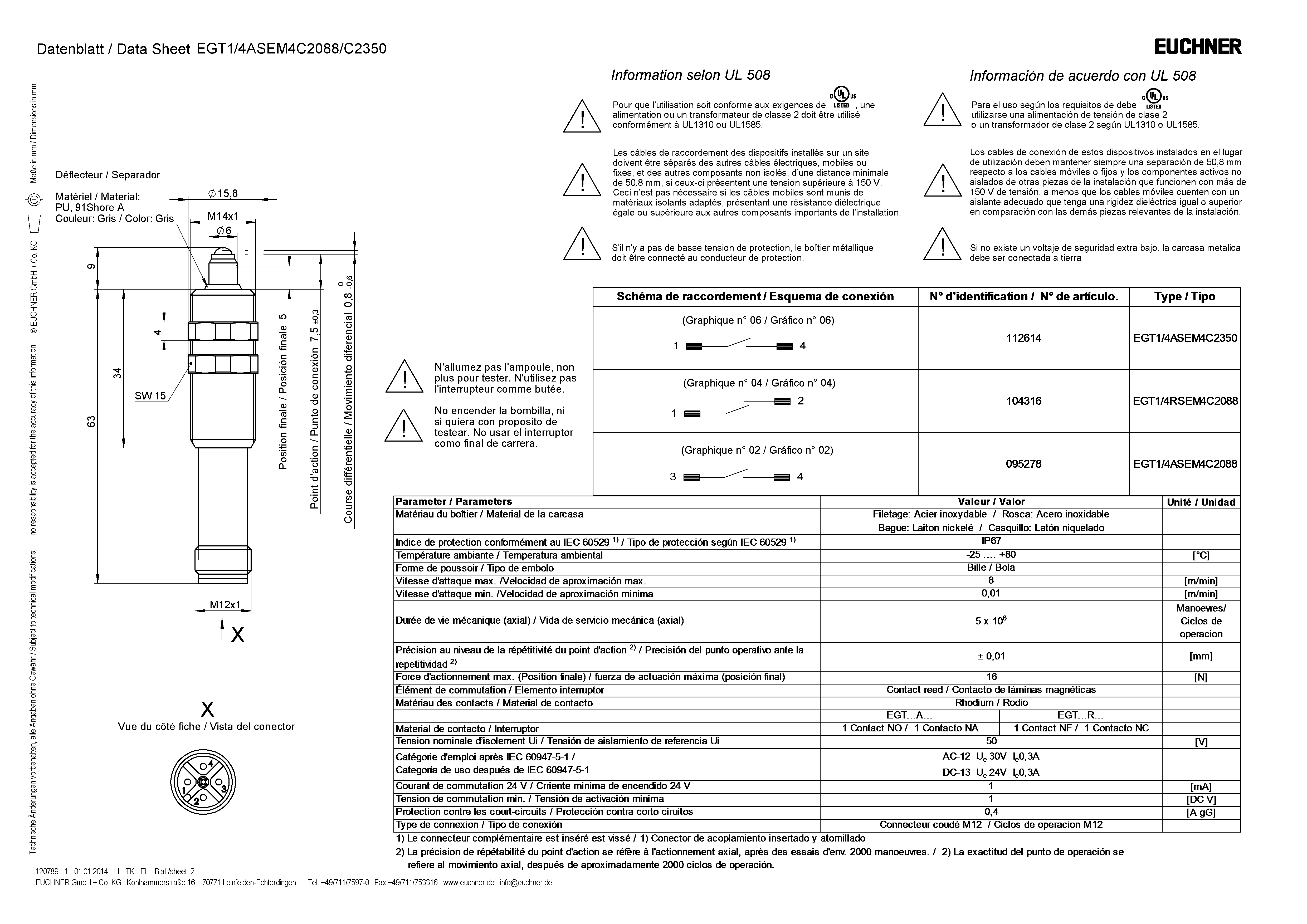 Mode d’emploi Interrupteurs de position de précision EGT avec contacts Reed