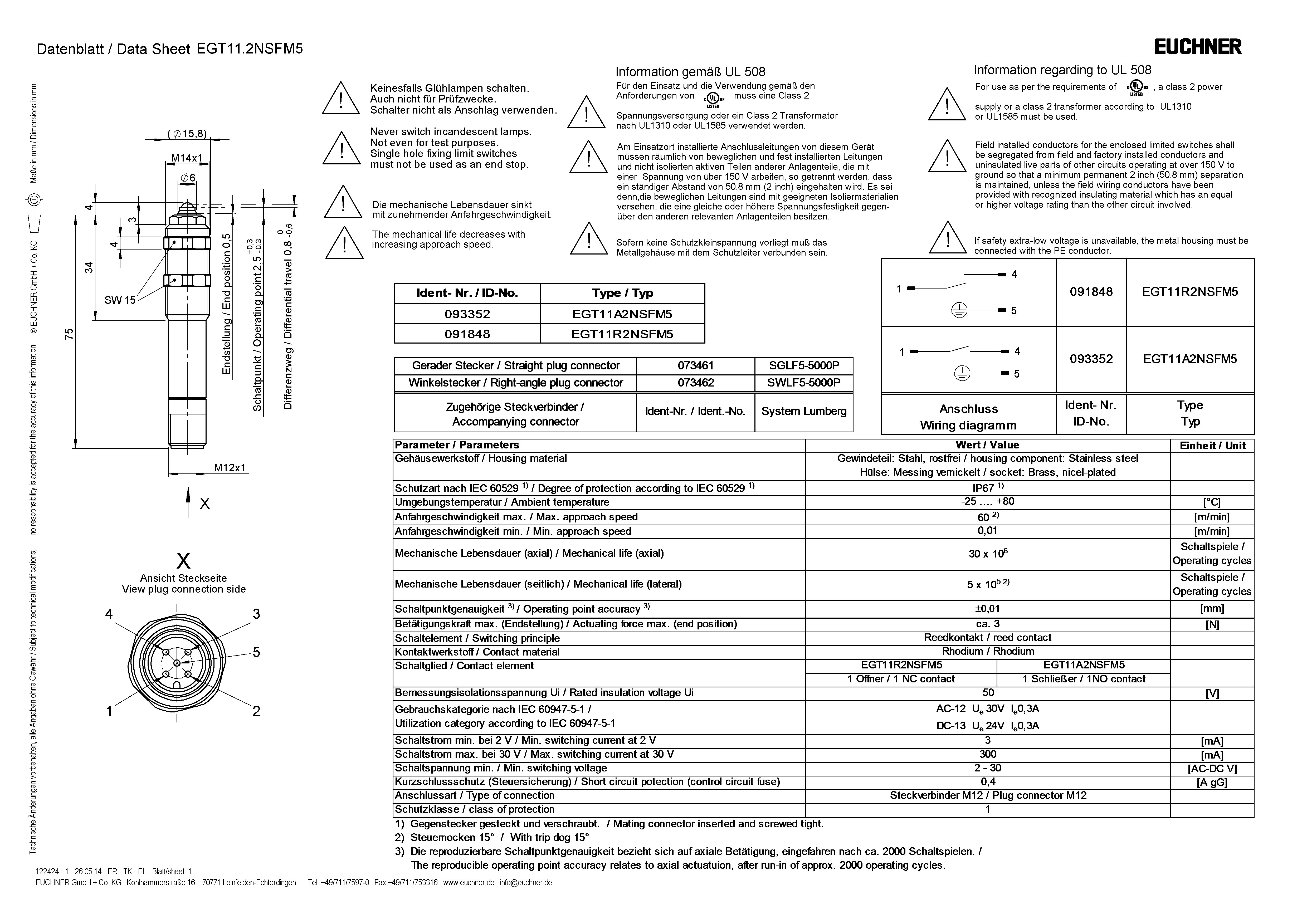 Betriebsanleitung Präzisions-Einbaugrenztaster EGT mit Reed-Kontakten