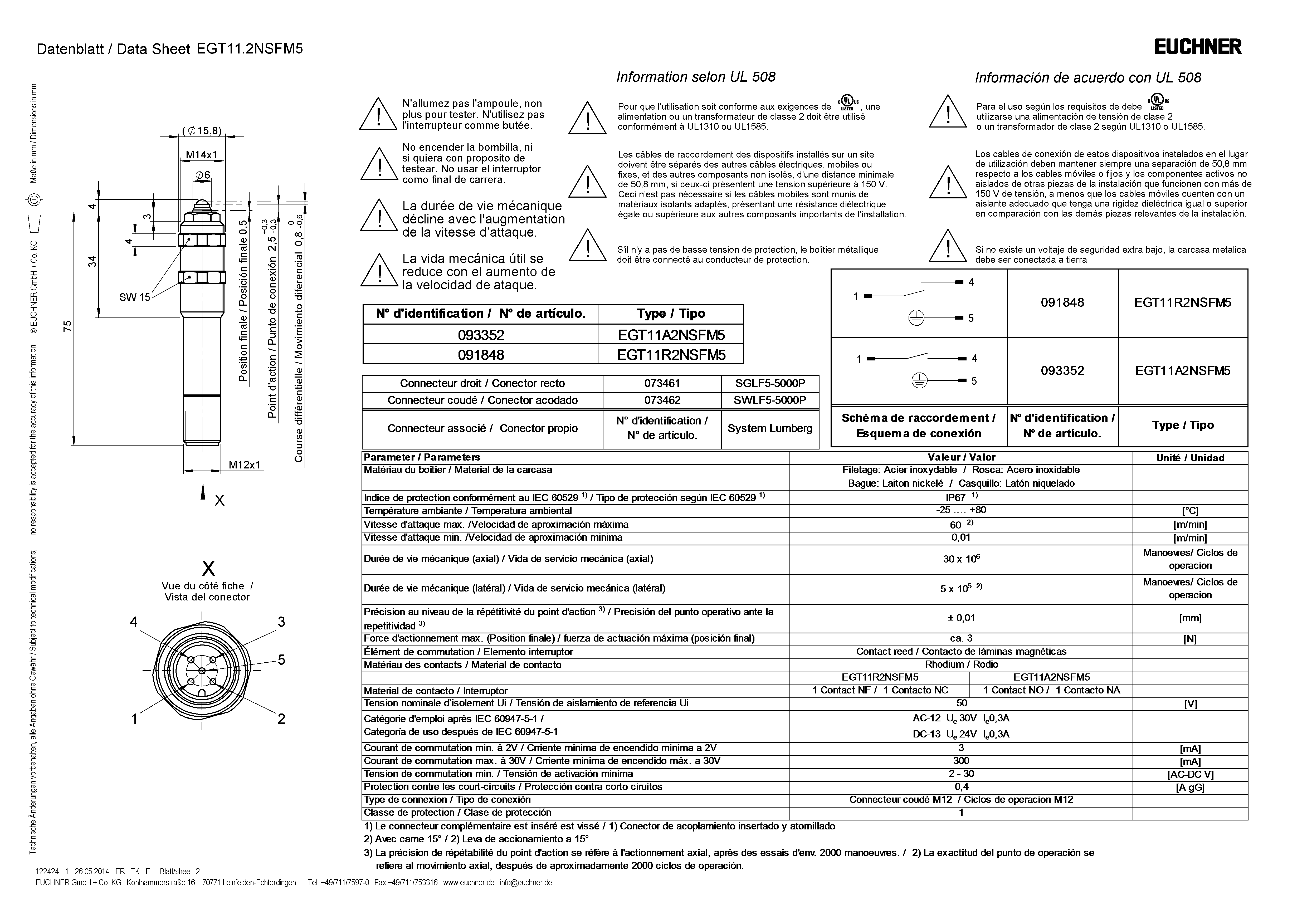 Mode d’emploi Interrupteurs de position de précision EGT avec contacts Reed