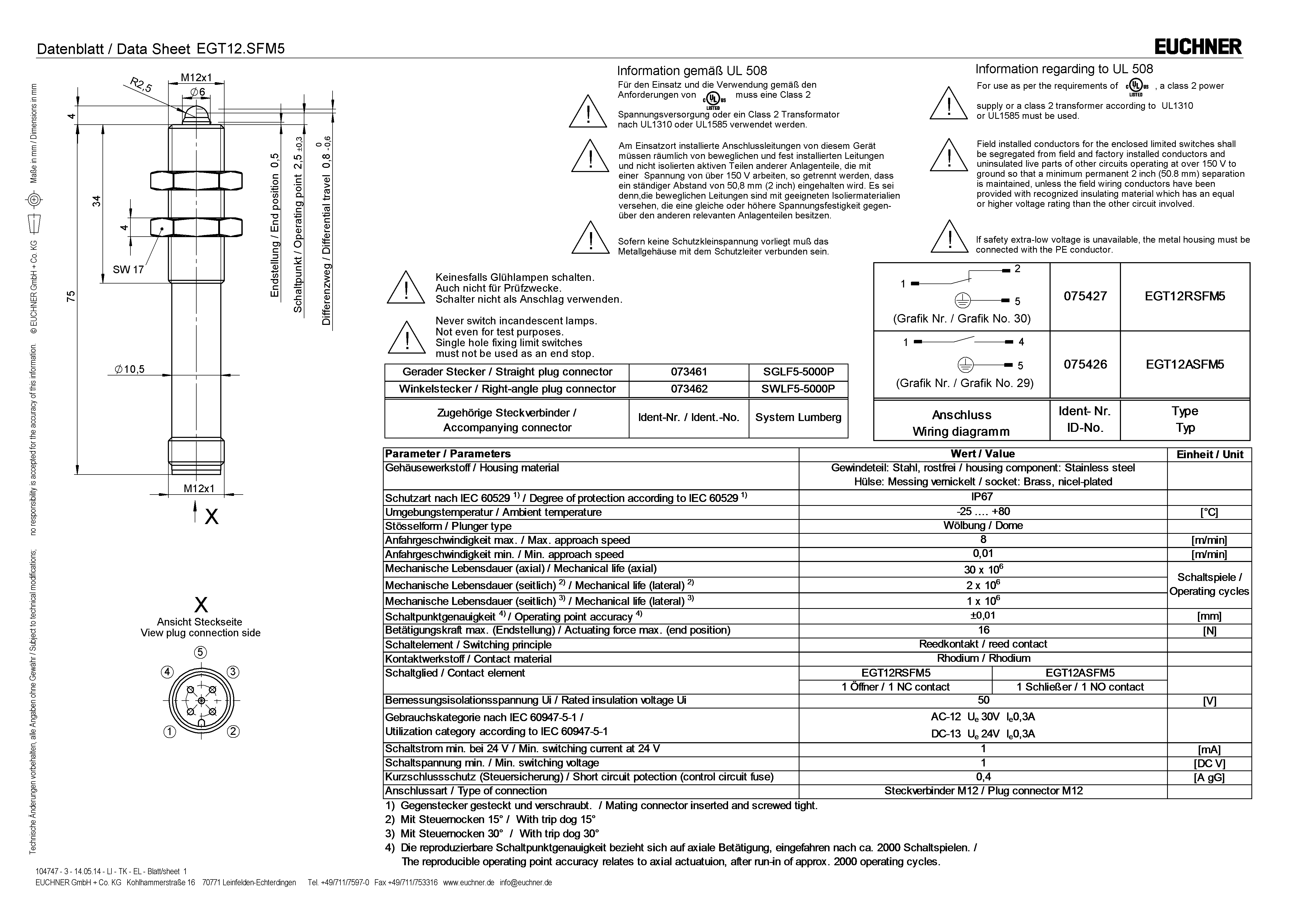 Operating Instructions Precision Single Hole Fixing Limit Switches EGT with Reed Contacts