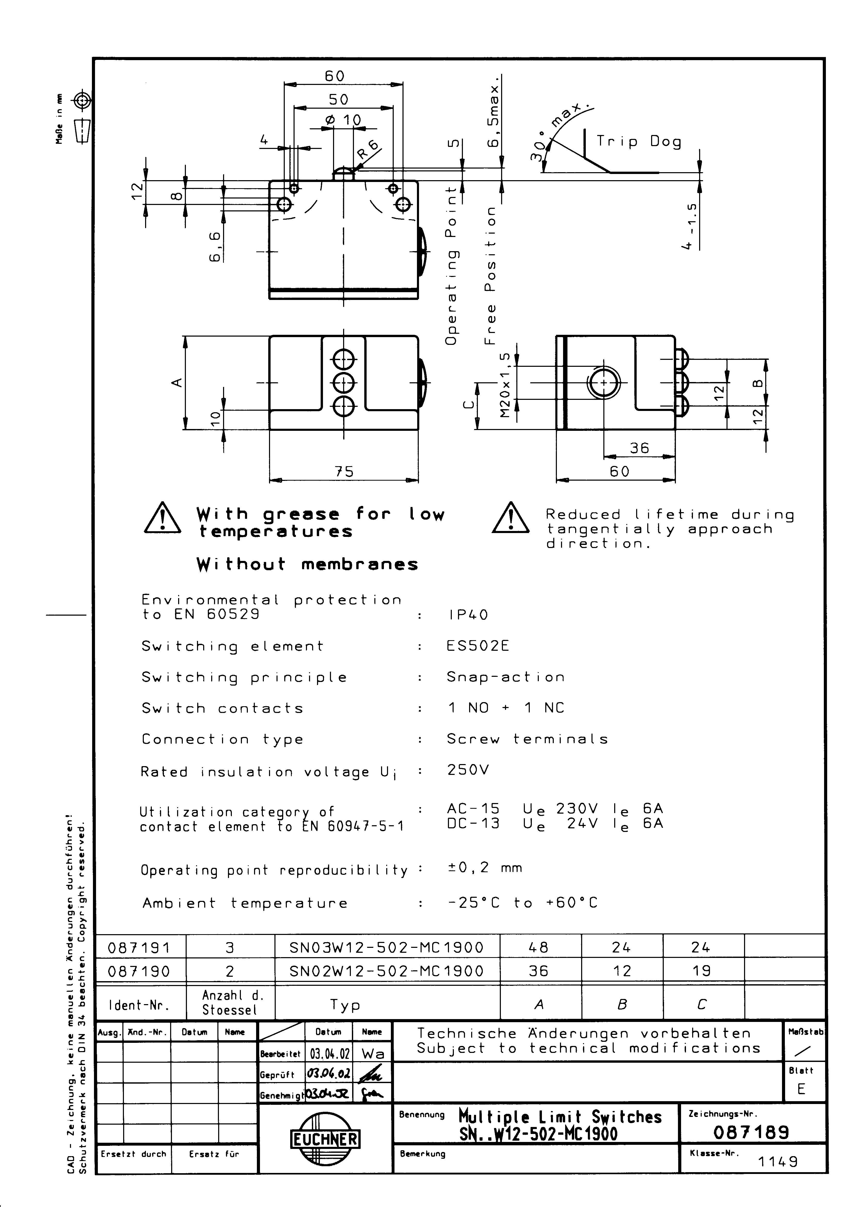 Operating instructions Precision Multiple Limit Switches SN 12/16 mm