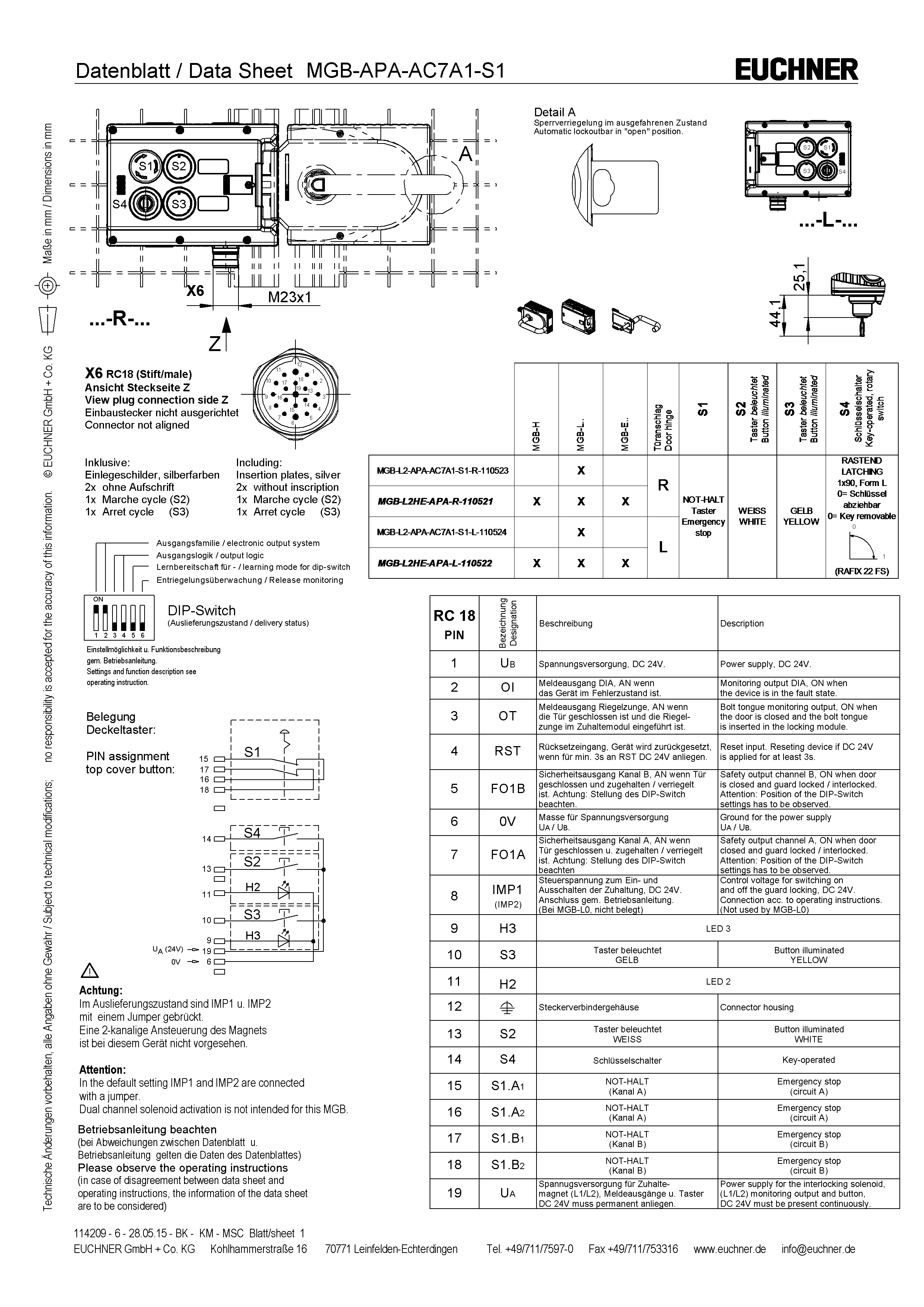 Módulos de bloqueio MGB-L2-APA-AC7A1-S1-L-110524 (Nº de encomenda 110524)