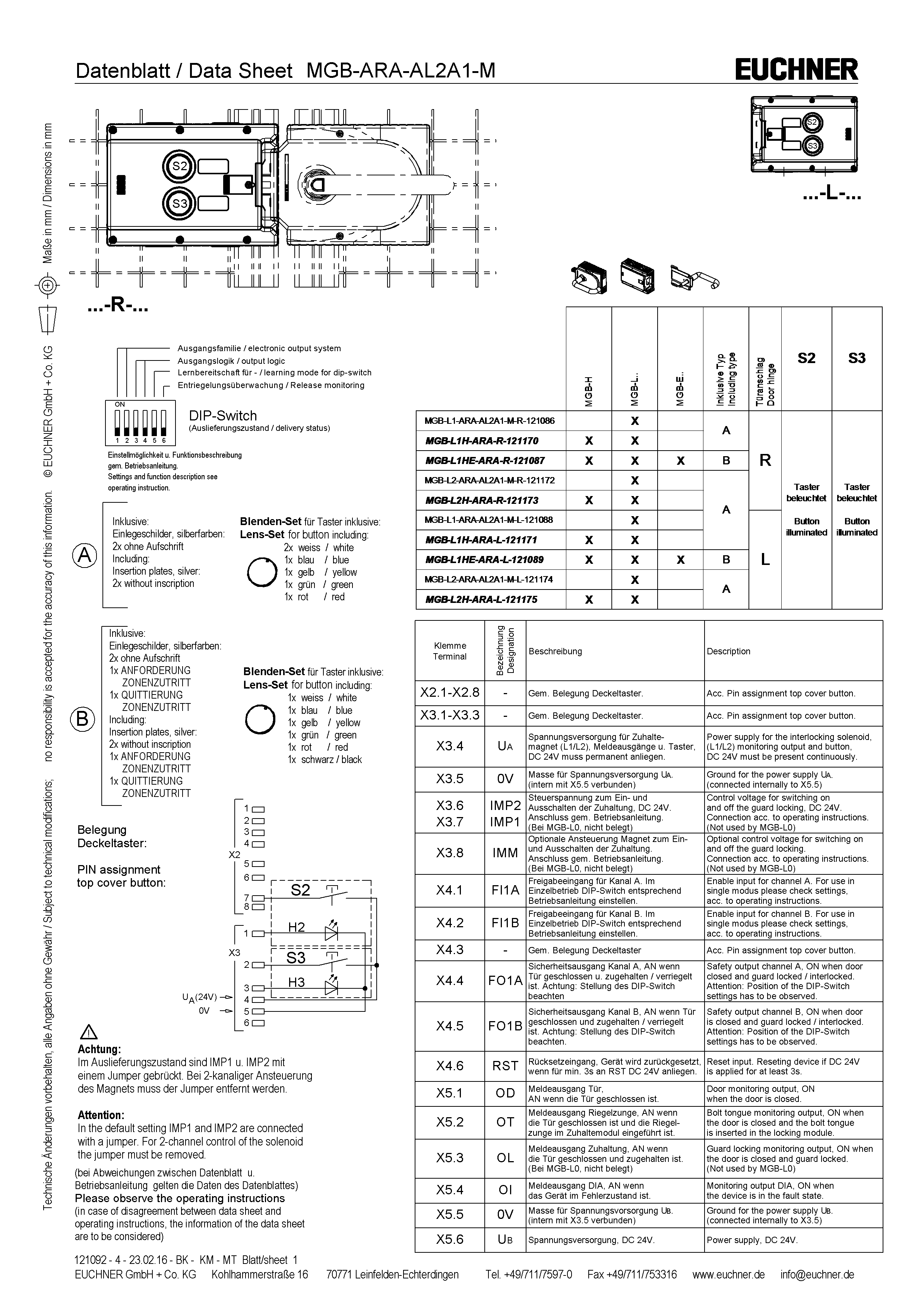 Módulos de bloqueio MGB-L2-ARA-AL2A1-M-L-121174 (Nº de encomenda 121174)