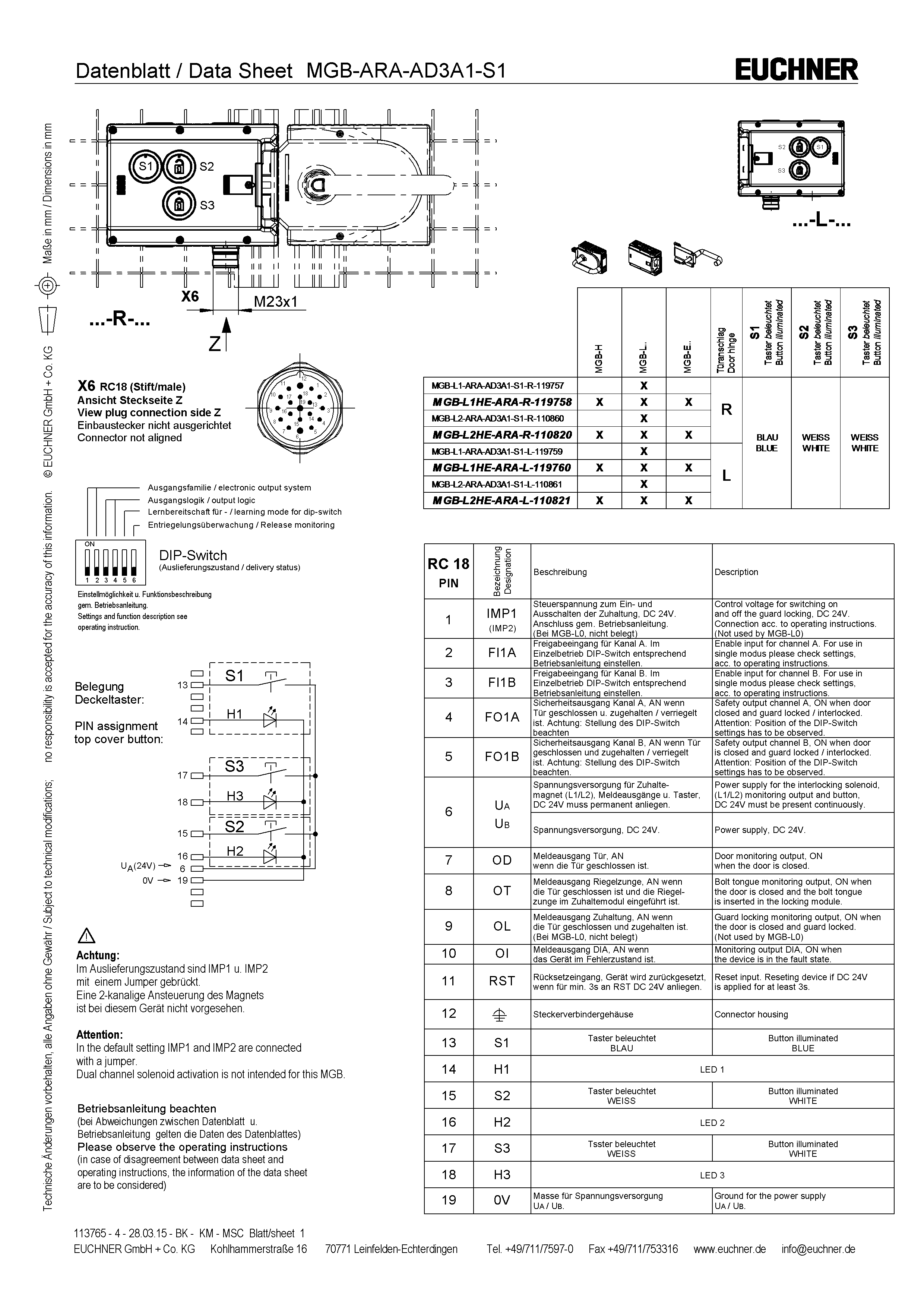 Módulos de bloqueio MGB-L2-ARA-AD3A1-S1-R-110860 (Nº de encomenda 110860)