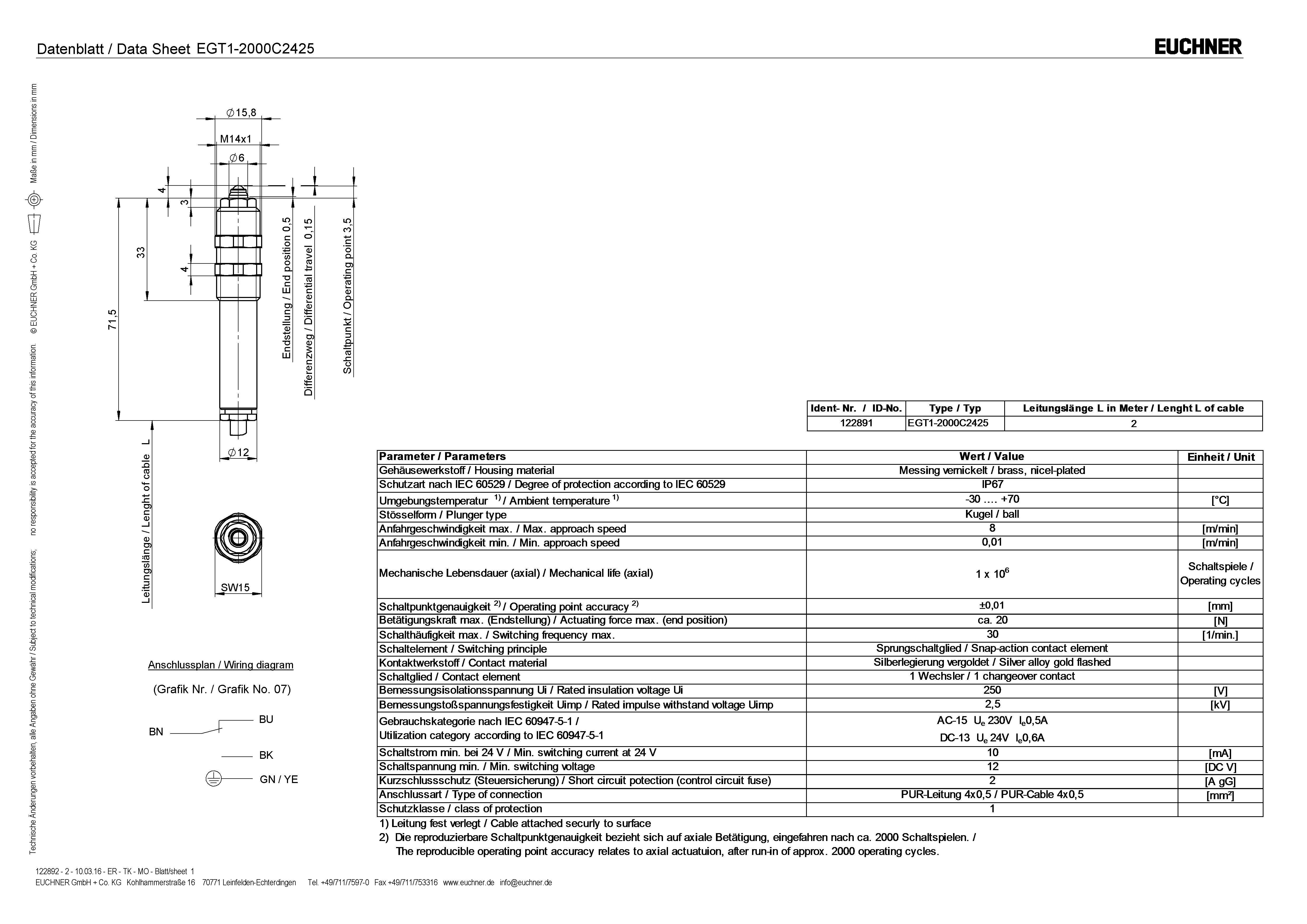 Betriebsanleitung Präzisions-Einbaugrenztaster EGM/EGT mit Sprungschaltgliedern