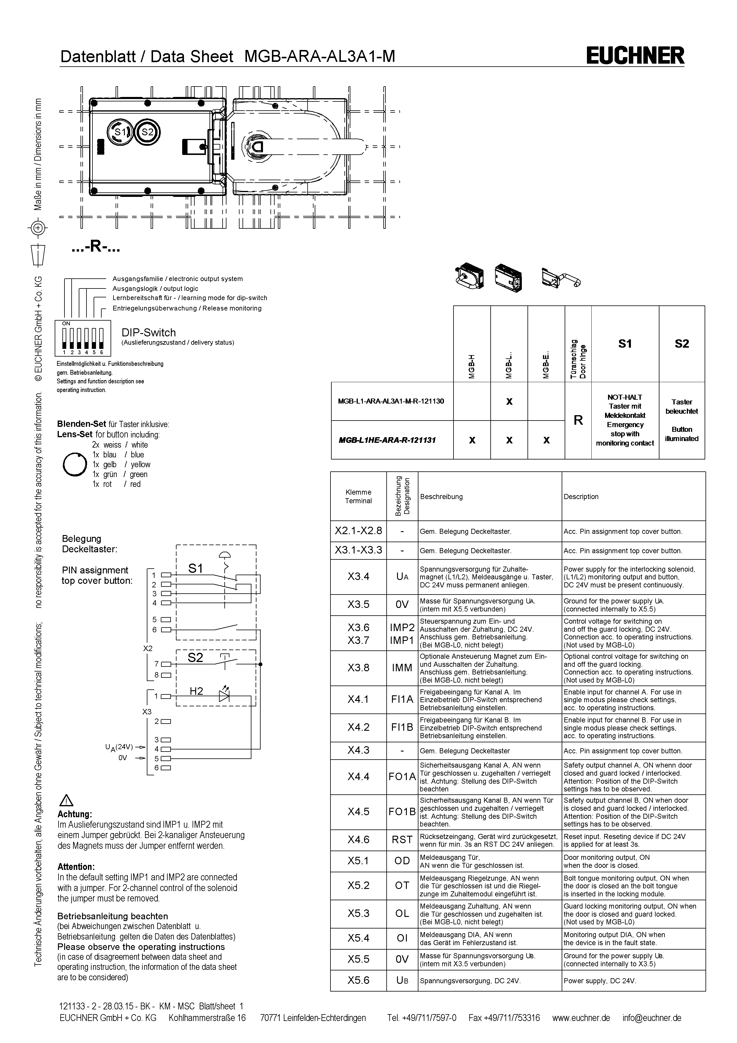 MGB-L1... | The locking arm is held in the locked position by spring force and is unlocked by solenoid force (closed-circuit current principle, mechanically locked). |