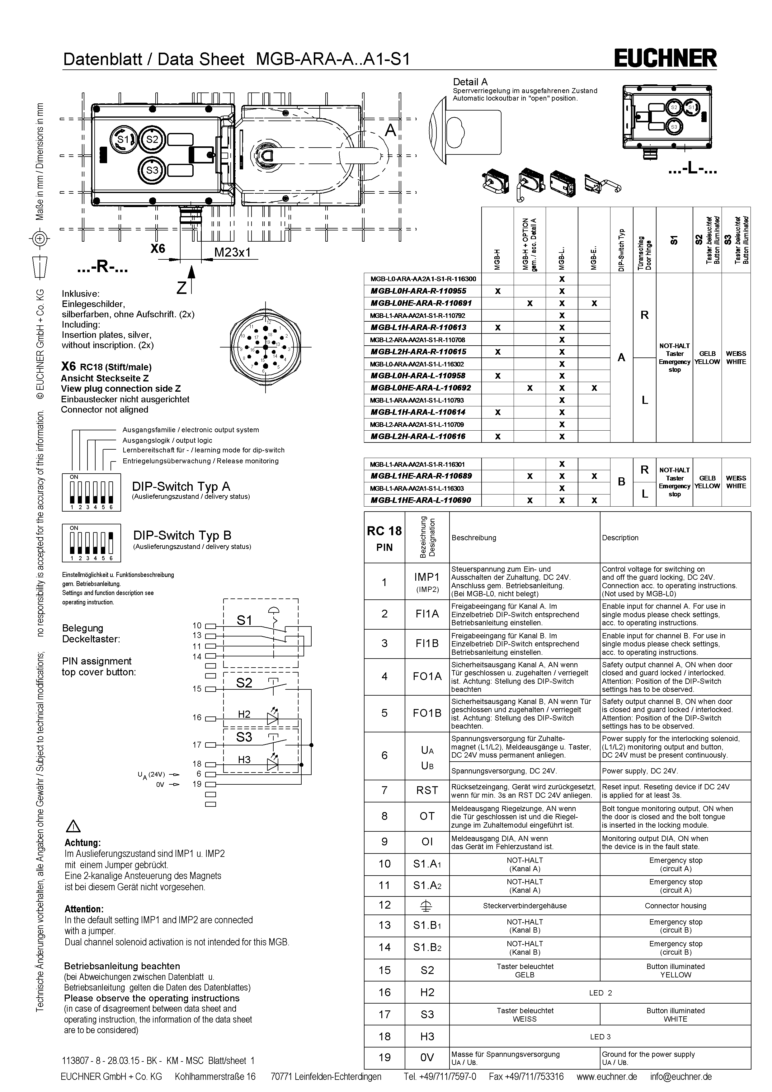MGB-L1... | The locking arm is held in the locked position by spring force and is unlocked by solenoid force (closed-circuit current principle, mechanically locked). |