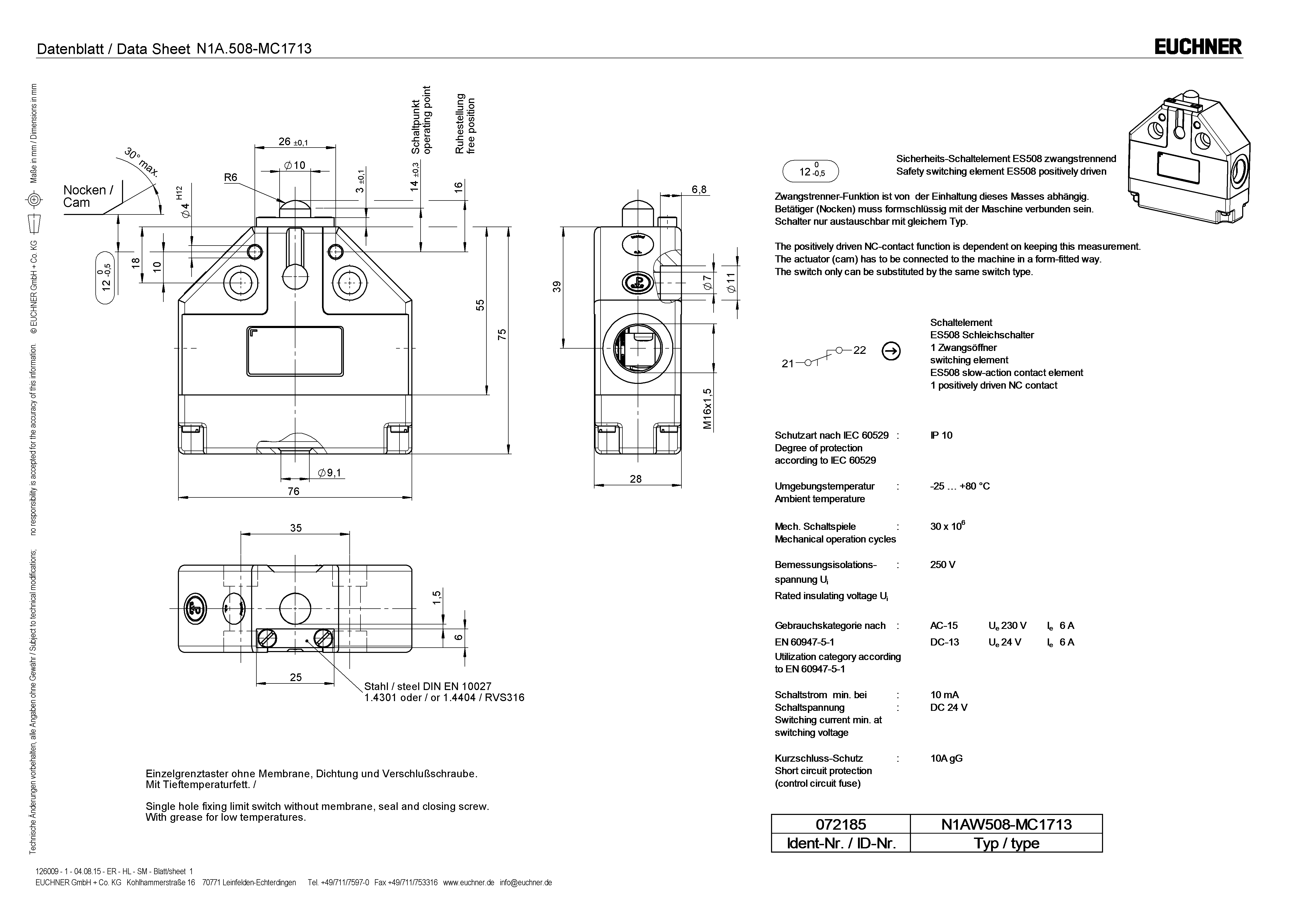 Betriebsanleitung Präzisions-Einzelgrenztaster N1A