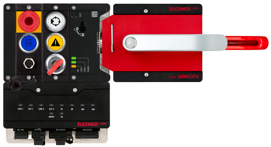MGB2-L1-MLI...锁止模块(3个按钮,急停开关,钥匙旋转开关,用于授权开关的M12圆形接插头,通电解锁,门铰链在右侧)